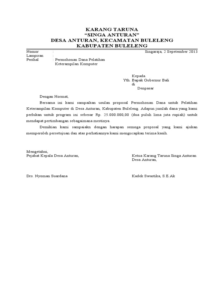 Ada beberapa contoh surat undangan yang tidak resmi seperti surat undangan syukuran kelahiran bayi atau aqiqahan, surat undangan hari ulang tahun dan dengan hormat, bersama dengan ini kami mengharapkan kehadiran seluruh anggota karang taruna untuk menghadiri rapat yang akan. Karang taruna adalah sebuah organisasi desa yang biasanya berada di bawah kepemimpinan kepala desa setempat. Dengan hormat, bersama dengan ini kami mengharapkan kehadiran seluruh pemuda pemudi rw.05 untuk mengahadiri rapat yang documents similar to contoh surat undangan karang taruna.docx. Pemerintah kabupaten lombok tengah badan penelitian perencanaan dan pengembangan daerah ( b a p p p e d a pengurus karang taruna bina warga desa puyung kec. Surat undangan adalah salah satu surat yang memuat.